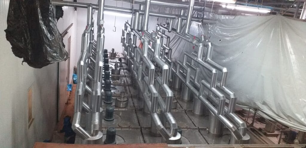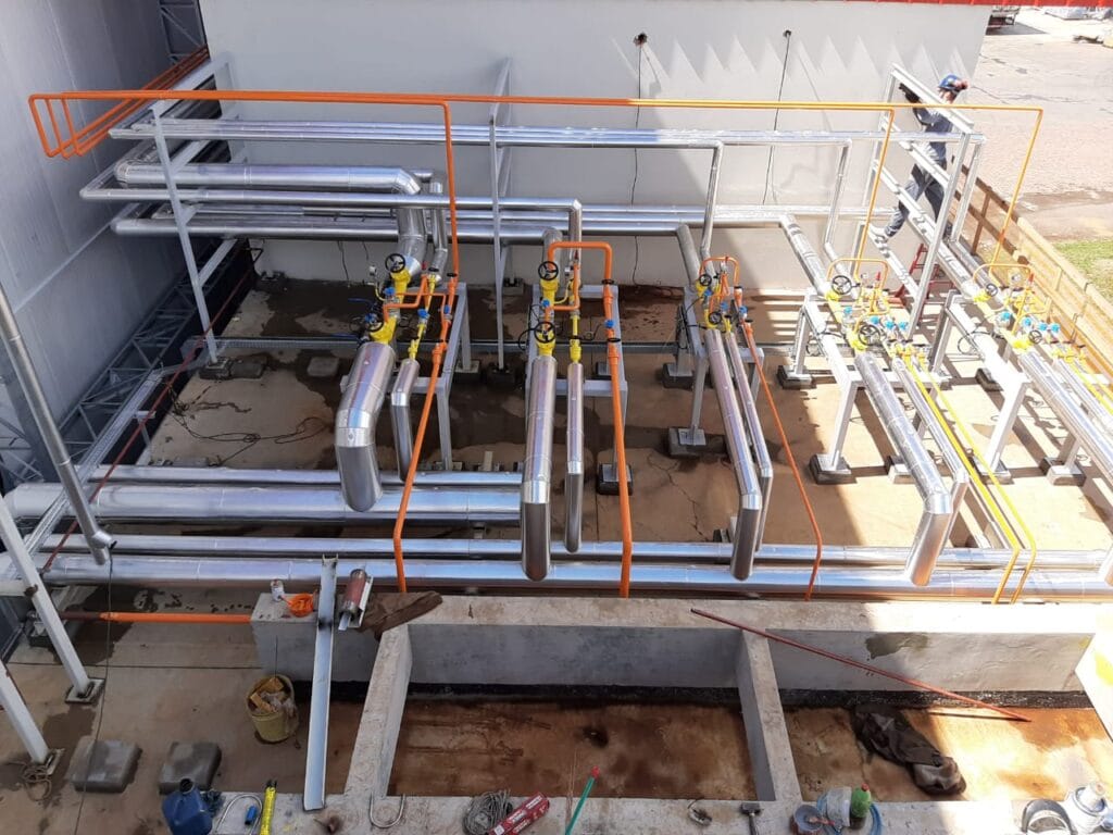 No quesito tubulações a empresa oferece o serviço de instalação de todo o tipo de tubulação para os mais variados fluidos de trabalho. Atualmente os principais fluidos utilizados pela indústria frigorífica são a amônia (NH3), ar comprimido, vapor e água.